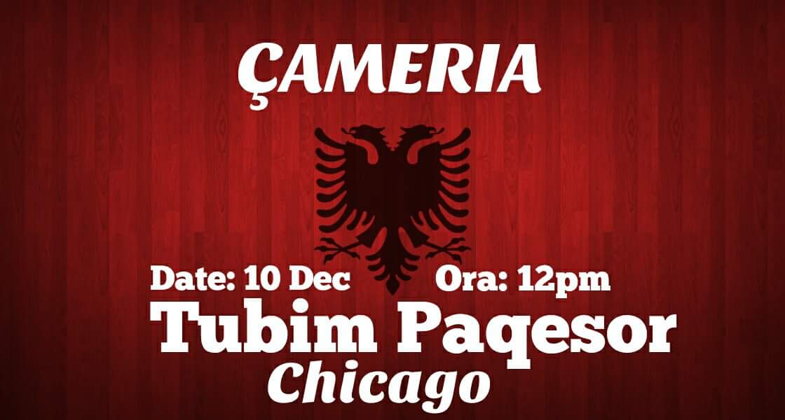 Pikerisht ne kete dite te shenuar per gjithe njerezimin shoqata cameria ne chicago ne bashkepunim me komunitetin shqiptaro amerikan ne shtetin e illinoisit kane parapare te organizojne nje tubim paqesor para konsullates greke ne chicago date 10 dhjetor ne ora 12.Duke ftuar gjithe shqiptaret ne chicago dhe rrethina per te kerkuar te drejtat e mohuara te popullsise came nder vite,tubimi do te tregoje unitetin e gjithe shqiptareve te bashkuar para selise se kesaj konsullate por duke i dhene dhe shtytje nderkombtarizimit te kesaj ceshtje qe qeveria greke me megalloni e ka mbyllur ne sirtaret e mykur te saj.Por ky eshte vetem vazhdimi i rruges se gjate qe kjo shoqate e ndihmuar dhe nga shoqata non profit org ne diaspore ka bere dhe do te beje ne te ardhmen.Krijimi i nje lobi te fuqishem ne senat dhe kongres do ta nxjerre ne plan te dukshem kete mohim te se drejtes se kesaj popullsie ne ballkan.Nderkohe qe qellimi eshte shume i lexueshem ,kerkohet nga kushdo ne diaspore te jete tek sheshi diten e djele, per te dhene nje impakt te madh para opinionit amerikan qe eshte shume i ndjeshem para nje prezence te madhe njerezish qe protestojne ne kerkim te te drejtave te tyre.Koha po troket ,diten e djele per te gjithe ata qe mund te vijne, me veshje dhe flamuj kombetare para konsullates greke ne chicago, ne tubim paqesor.