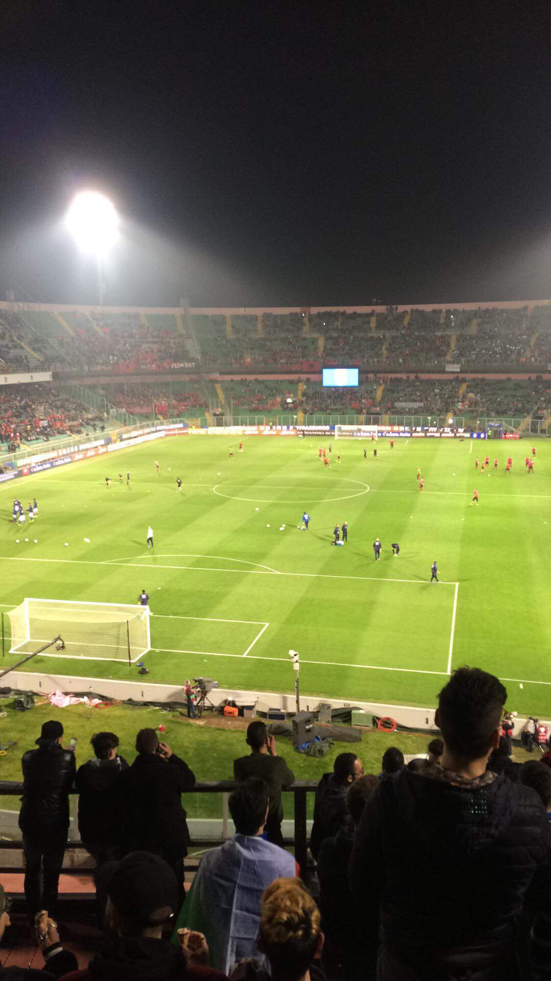 Eh,,,,ndodhi ajo qe ndodhi: albanezi va fan kulo erdhi pergjigja ne kor alla italiance,,,,,Une do flas me presidentin Duka nuk e dij si do ta pertyp kete sjellje te patolerushme tha de biazi ,fytja e ekipeve pas qetesimit te tymnajave dhe largimit te nje pjese te madhe te tifozerise nga zona e rrezikshme e zjarrit dhe fishekzjarreve qe per kete rast Fifa duhet te shoh jo vetem tifozet Shqiptare por dhe menaxhimin e pales italiane ,qe lejuan me dhjetra fishekzjarre dhe tymese te hynin ne stadium,solli dhe golin e dyte ,italia tashme kishte mposhtur djemte tane,te stresuar me shume nga cfare ndodhi se sa nva loja e barabarye qe ata bene.Gjithe tifozet qe na rrethonin na dhane doren dhe na pergezuan per skuadren por jo per ate qe pane perballe tyre: tribuna sud ju beri autogol aty ju humbet ndeshjen,vete e ndeshkuat skuadren shume te mire qe keni bere,dhe mire e kishin kesaj here ne kishim bere me te keqen per vehten tone, dhe nuk u habit aspak kur ne mengjes ne aerport degjoja biseda shqip se sa mire ja beme i vume flaken ka lezet keshtu ta dijna ca i bejme ne shqipot pipinove,,,,bla bla,,,Me te thatin digjet dhe i njomi.