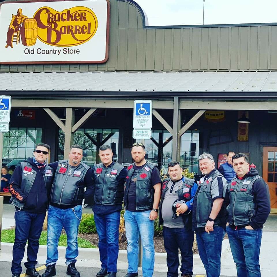 Normalisht, që ata na dalluan prej flamurve dhe simboleve tona, kuq e zi edhe emblemën e madhe që në mbajmë prapa në xhaketat e zeza të meshinës, dhe kokoret tona. Para aritjes në Knocksville, Tennessee, duke kaluar nëpërmjet vargmaleve Smoky Mountains, na zuri një kohë shumë e keqe me shi të fortë, erë të ftohtë me temperatura të ulta prej 35 shkalle Fahrenheit. Pa marr parasysh motin e keq, të pregaditur me pajisjet që në kishim, kemi mbrrirë suskseshem në destinacionin tonë, në mesnatë.