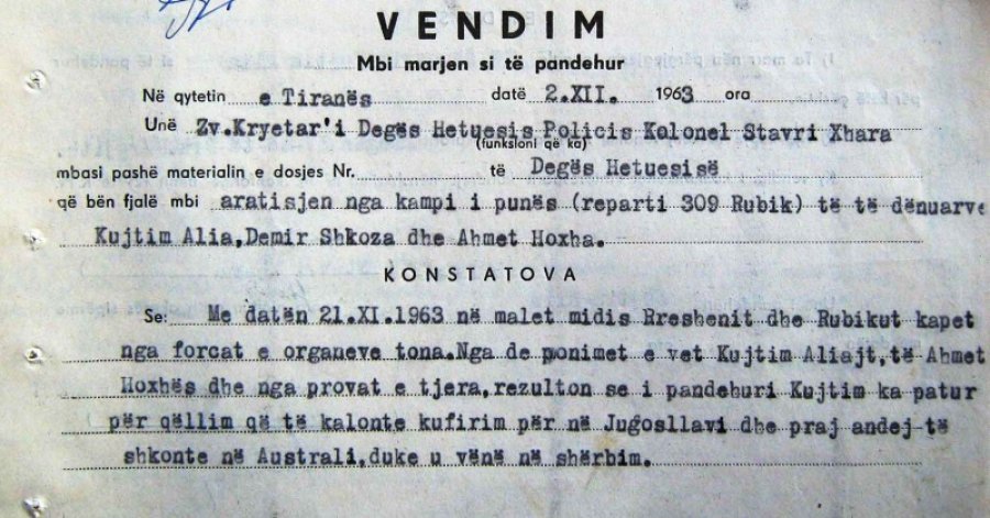 U la në fuqi me vendimin nr.1, datë 6.1.1964 të Gjykatës së Lartë. Demir Shkozës nuk iu fal jeta nga Presidiumi i Kuvendit Popullor, i cili me vendimin e datës 2.3.1964 njoftoi refuzimin. Ahmet Hoxha u orvat për herë të fundit të arratisej nga Spaçi më 10.10.1978, por i diktua përsëri dhe u dënua me vdekje dhe u ekzekutua më 31.1.1979 në rrugën e Kaçinarit.