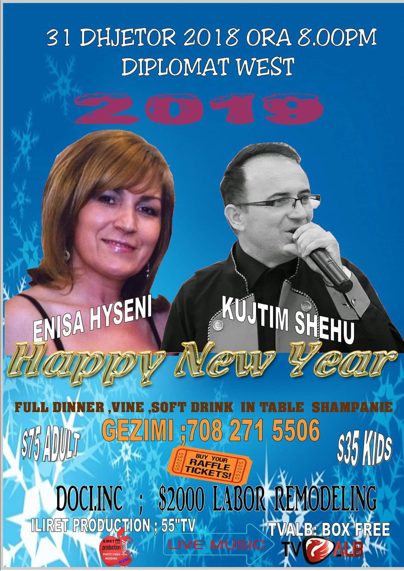 Muzike live me kujtim shehun dhe enisa hysenin so dhe performimi me d.j ,babagjyshi me dhuratat per femijet pjesmarres,llotaria me cmime inkurajuese ,ushqimi i bollshem dhe traditional shqiptar do ta mbaje ndezur kete nate te nderrit te viteve. Ne kete ore te gjithe pjesmarresit me kapela dhe bilbile,tollombace dhe lodra do te numurojne bashkarisht sekondat e fundit te 2018 per ti hapur rruge nje viti te ri plot shendet dhe lumturi ne cdo familje shqiptare.