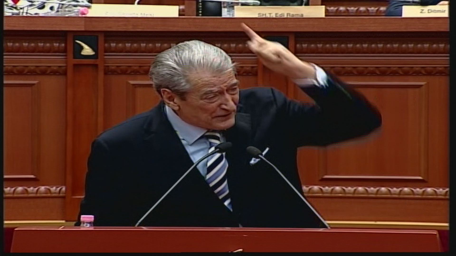 “Na rast se ju përdorni këtu diktatin e krimit si përfaqësues të tij për të hedhur poshtë këtë amendament, i cili do të bënte historinë për shqiptarët. Për ndryshe, ju garantoj se forca do të ju shkulë nga këto karrige; për ndryshe bëhuni gati pasi në rrugët dhe sheshet e Shqipërisë do të ushtojnë: O djem rrëmbeni armët! Ja vdekje, ja liri!”, tha Berisha.