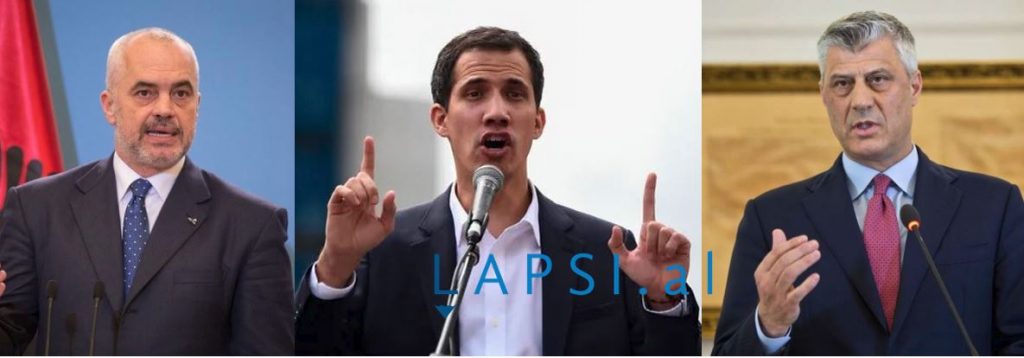 Ata kanë adoptuar një qasje tejet servile ndaj presidentit Trump që bashkë detyroi edhe një sërë shtëtesh amerikano latine të njihnin Guaidon si president. Në fillin Edi Rama njoftoi në Twitter se ai njihte liderin e opozitës venezueliane si president par interim. Hashim Thaçi shkoi edhe më tej. “Urimet më të mira për Presidentin e Venezuelës, Guaido. Kosova e ka njohur dje tranzicionin, sipas linjës së aleatëve tonë dhe sipas vlerave që ne ndajmë. Unë të ftoj në Kosovë. Ne gjithashtu jemi rritur si një feniks disa dekada pas diktaturës”- deklaroi Thaçi.