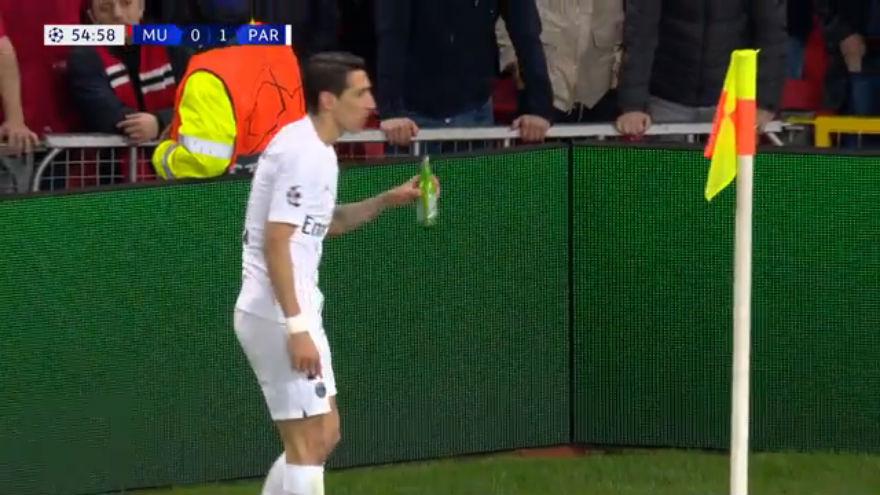 Në minutën e 53′ argjentinasi mori revanshin e tij personal: Kimpembe shënon, Di Maria harron të shkuarën dhe festoon duke sulmuar verbalisht tifozët e Red Devils, që hakmerren duke i hedhur një shishe birre. Lojtari nuk e humbet toruan: pi një gllënkë, përpara se të japë assist për golin e dytë të Mbappé.
