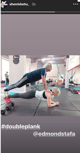 Ajo ka ndarë për ndjekësit e saj në rrjetet sociale momente nga palestra nga ku po ushtrohet. Në foton e postuar në Instagram Xhemi po bën një ushtrim të vështirë i cili ndihmohet dhe nga trajneri i saj Edmond Stafa.