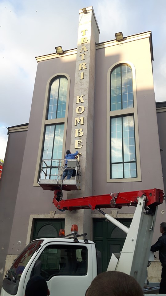 Ndërkohë ashtu siç edhe kanë paralajmëruar këto ditë, artistë, aktivistë dhe përfaqësues të politikës janë grumbulluar në sheshin para Teatrit Kombëtar për të rivendosur shkronjat në fasadën ballore të godinës.