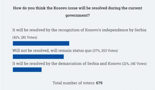 Gazeta serbe ‘Danas’ ka organizuar një sondazh ‘online’ në ueb-faqen e saj duke pyetur qytetarët serbë se çfarë mendojnë se cila do të jetë marrëveshja përfundimtare midis dy shteteve?