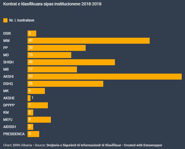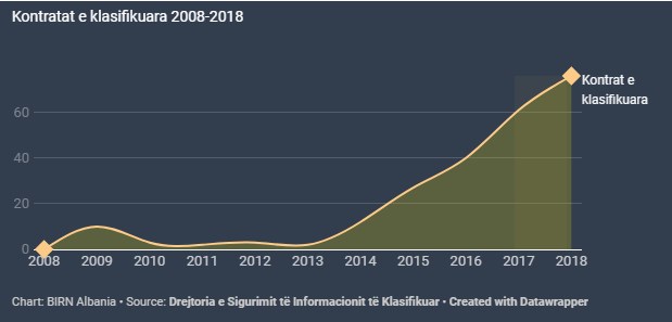 Të dhënat e siguruara nga BIRN nëpërmjet ligjit për të drejtë informimi tregojnë se klasifikimi i prokurimeve publike si sekret shtetëror ka njohur një rritje eksponenciale që nga ardhja në pushtet e kryeministrit socialist Edi Rama. Nga viti 2014 deri në vitin 2018, qindra kontrata publike, duke filluar nga teknologjia informacionit, mirëmbajtja e ndërtesave publike e deri tek shërbimeve qeveritare janë klasifikuar si sekret.