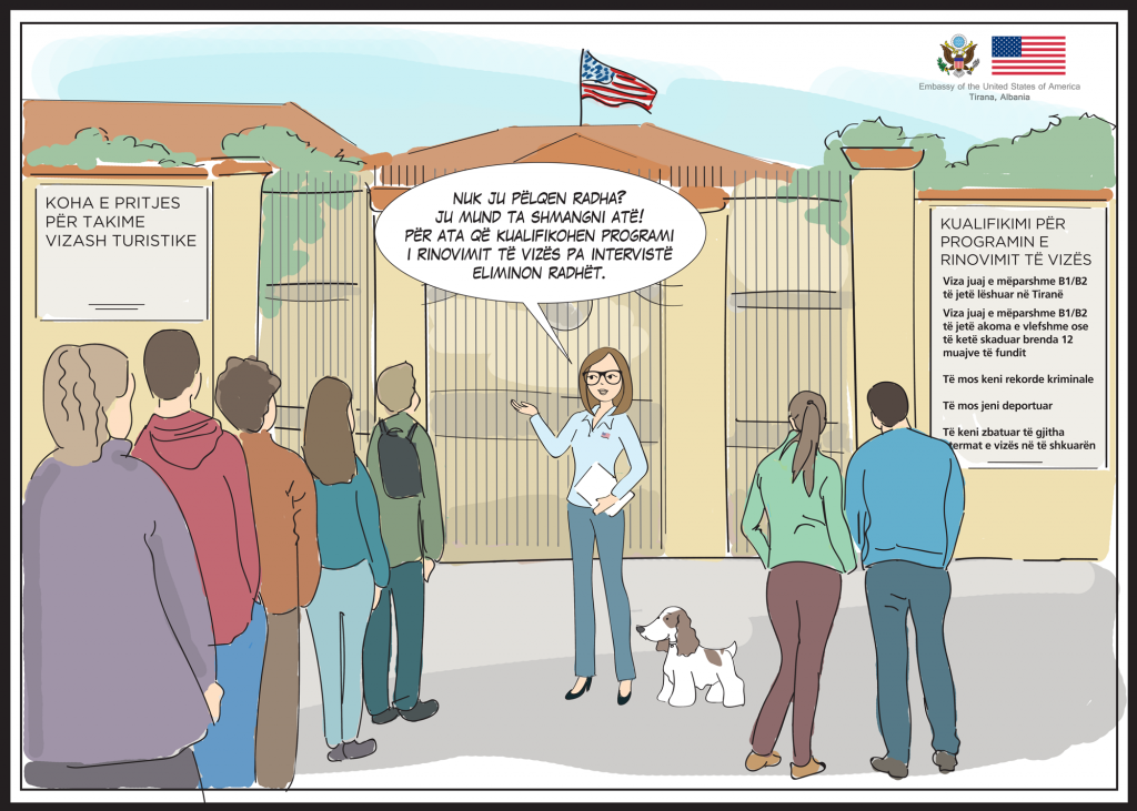 Nëse i përmbushni kriteret, ju mund të anashkaloni qëndrimin në radhë për vizë! Përdorni programin tonë të rinovimit të vizës me postë! #PyetAnnën”, shkruhet në njoftimin e ambasadës.