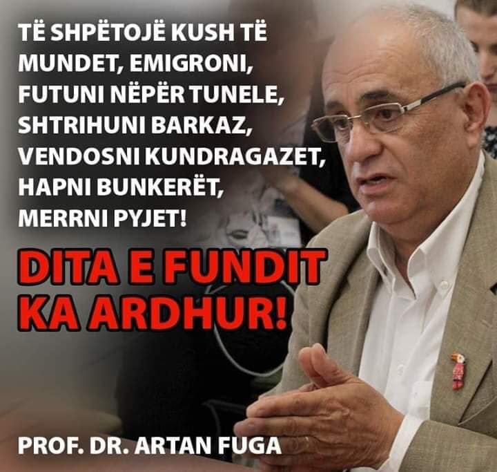 Pr doktor Artan Fuga ka postuar permbledhjen e gjendes qe ai mendon ne raport me ate cka duhet te bejne shqiptaret.Fatalitet dhe dorezim i nje populli ne shtepi te vete.Kjo eshte senteza shkurt e profesorit.Ne po e postojme te plote postimin e tij
