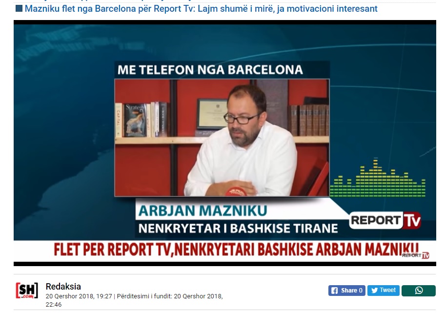 Mbrëmjen e së premtes JOQ Albania ka publikuar një faturë të nisur nga një qytetar ku shikohet se si biznesmeni Shkëlqim Fusha pronar i kompanisë “Fusha SHPK” i ka paguar nënkryetarit të Bashkisë së Tiranës, Arbjan Maznikut një faturë në hotelin “Alma Barcelona” në Barcelonë të Spanjës.