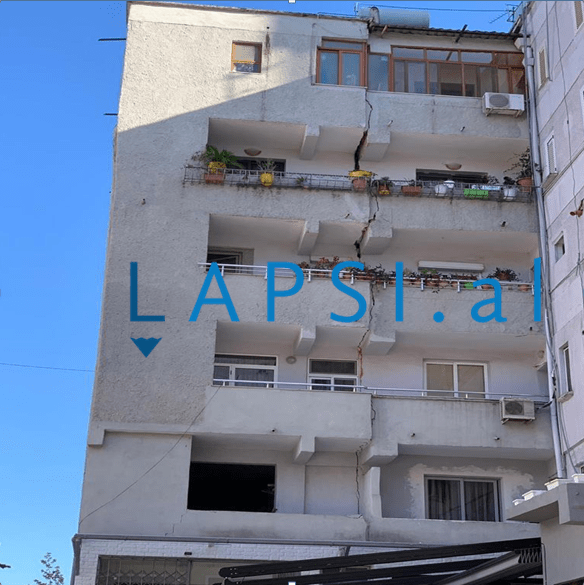 Sikurse mund të konstatohet nga videot e bashkëngjitura më poshtë dhe fotoja e siguruar nga Lapsi.al, një ndërtesë në zonën e Komunës së Parisit në Tiranë, është çarë më dysh si pasojë e tronditjeve të forta.