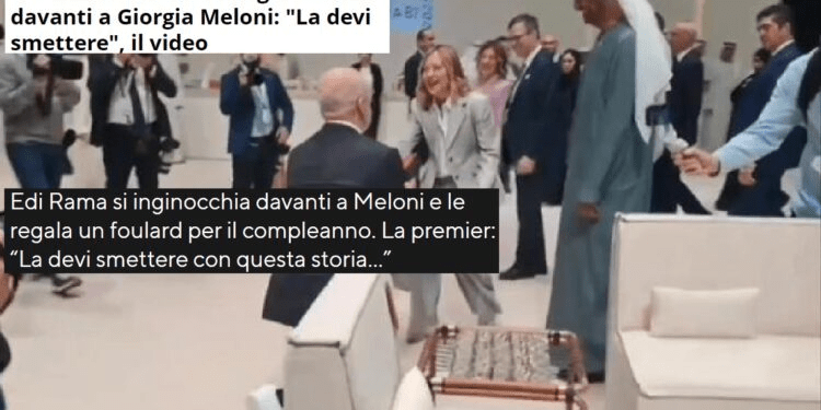 Kryeministri Edi Rama ia doli që të zinte edhe një herë faqet e para të mediave italiane. Jo për marrëveshjen trepalëshe Shqipëri – Itali – Emirate për lidhjen nënujore energjetike që do të përshkojë Adriatikun, por për skenat e tij. është bërë viral gjesti i kreut të qeverisë shqiptare që u ul në gjunjë përpara kryeministres italiane.