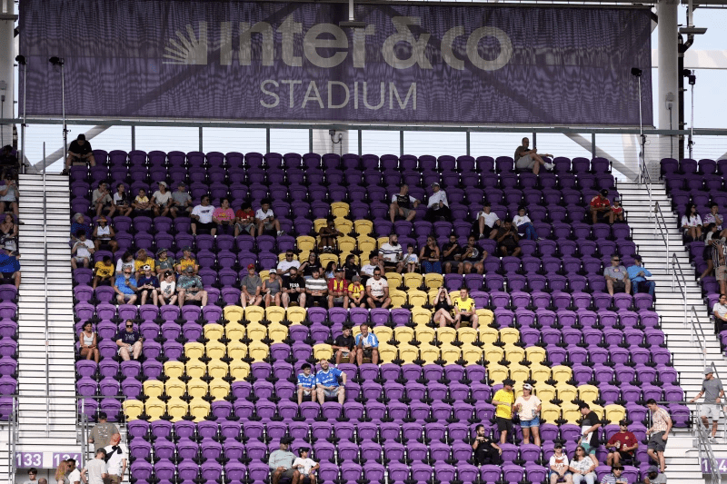 Turma ishte aq e rrallë sa fjala “ORLANDO” — e shkruar me ndenjëse të verdha në njërën nga tribunat kryesore në stadiumin Inter&Co — ishte pothuajse plotësisht e papenguar. Rojet e kontrollit të turmës qëndronin pranë fushave anësore dhe monitoronin zona të gjera me hapësira boshe në stadiumin me kapacitet prej 25,500 vendesh.