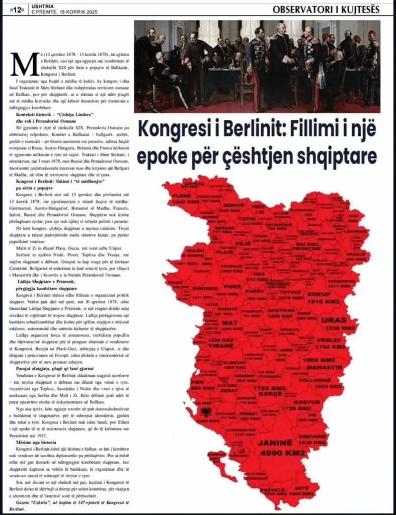 “Si i dokumenton Shqipëria të gjitha këto? Duke iu referuar Kongresit të Berlinit (1878), ku, sipas botimit, Shqipëria u copëtua! Cila Shqipëri e vitit 1878? As vetëdija kombëtare shqiptare, as ideja e krijimit të një shteti shqiptar, as diçka e lidhur me këtë nuk ekzistonte në atë kohë. Shqiptarët kishin kërkuar të bashkoheshin me Greqinë që nga vitet e Ottos. Përshtatshmëritë dhe lojërat e ndyra të Italisë dhe Austrisë krijuan shtetin artificial në kufijtë tanë veriperëndimorë” – shkruan “Protothema”.