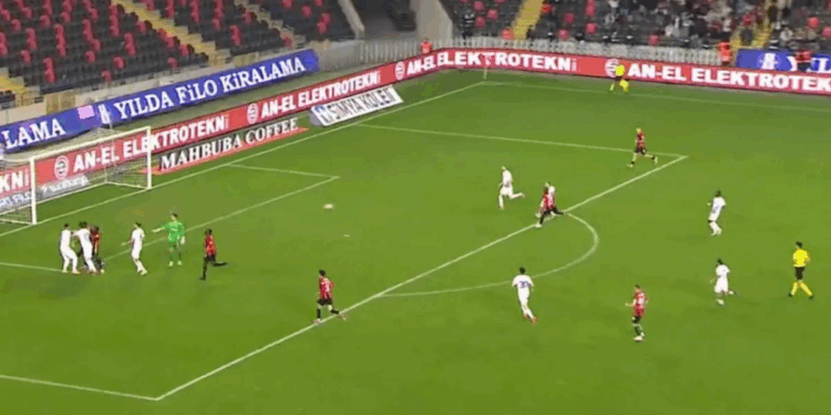 Finale surreale në Gaziantep–Eyupspor, ndeshje e Super Ligës. Me miqtë në avantazh 2-0 falë golit të sapo shënuar nga Halil Akbunar, vendasit ngushtojnë diferencën në mënyrë rocamboleske: Emmanuel Boateng shënon 2-1 duke gjetur portën plotësisht të braktisur.