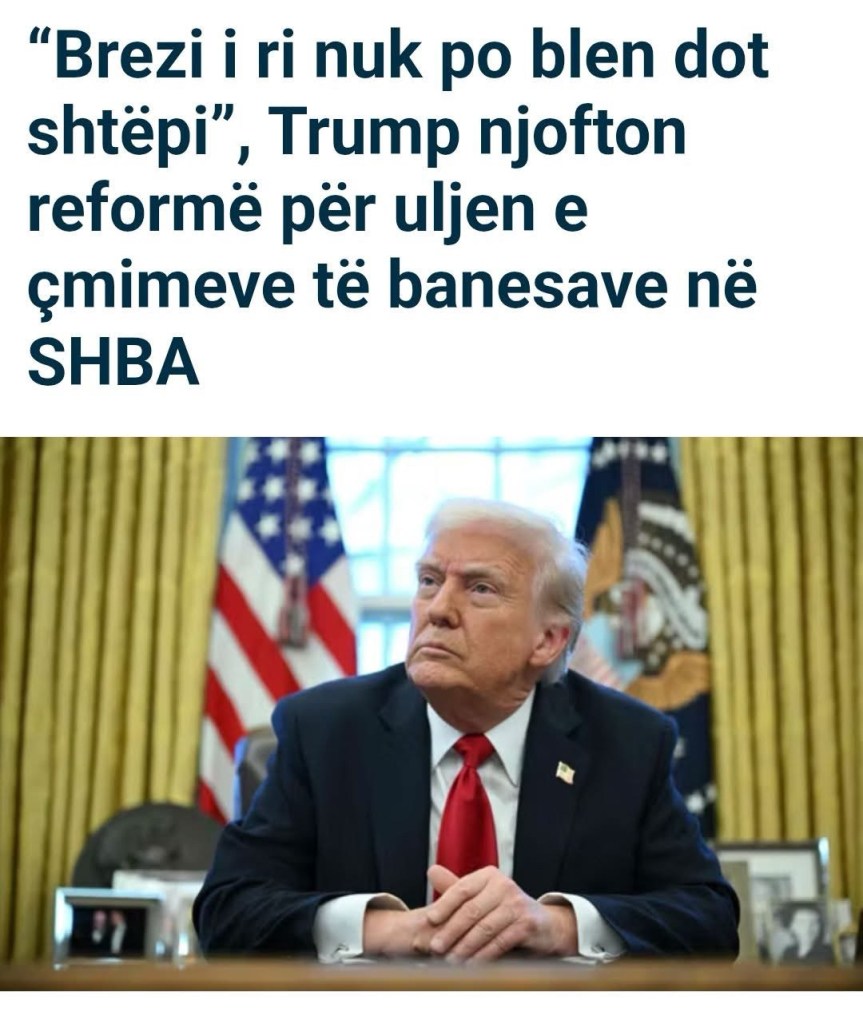 Presidenti Donald Trump njoftoi se do të ndërmarrë një reformë për uljen e çmimeve të banesave në SHBA, duke sulmuar Administratën Biden për inflacionin e lartë dhe rritjen e çmimeve të shtëpive, të cilat sipas tij e kanë bërë ‘Ëndrrën Amerikane’ të paarritshme për shumë qytetarë.”