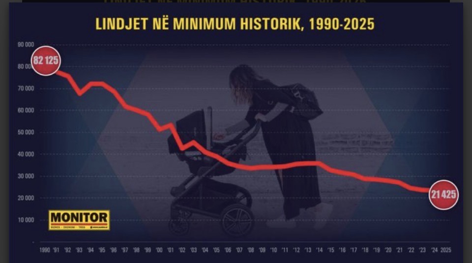 rënia më agresive është vërejtur në dekadën e fundit; nga 32,715 lindje në vitin 2015, Shqipëria ra nën kufirin psikologjik prej 25 mijë lindjesh në vitin 2023, për të arritur në rekordin negativ të këtij viti.