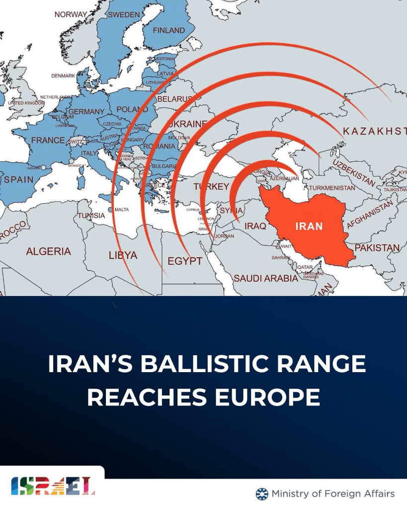 Me anë të një postimi në X, Ministria e Jashtme e Izraelit ka publikuar një hartë se deri në çfarë vendesh mund të arrijnë raketat balistike të Iranit.