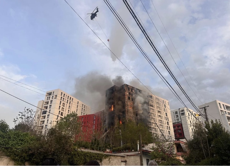 Marrë shkasë nga zjarri në një nga pallatet shumë kate përballë QSUT-së, sot datë 14 prrill 2026…!